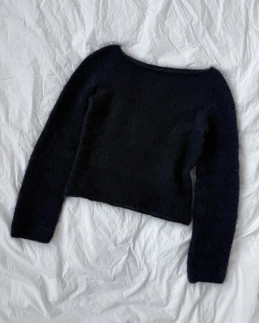 Material: 175 (175) 175-200 (200) 200 (200-225) 225 (250) 250 (275) g Brushed Lace från Mohair by Canard (25 g = 210 m) eller Silk Mohair från Isager Yarn (25 g = 212 m) eller Primo Tynn Silk Mohair från Sandnes Garn (25 g = 212 m) eller Tilia från Filcolana (25 g = 210 m) eller 150 (175) 175 (175-200) 200 (200) 200 (225) 225 (250) g Soft Silk Mohair från Knitting for Olive (25 g = 225 m) eller 120 (120) 140 (140) 160 (160) 180 (180) 180 (200) g Deluxe Silk Mohair från Krea Deluxe (20 g = 240 m). Notera, att det stickas med dubbel tråd. Garnförbrukningen anger den totala garnåtgången.