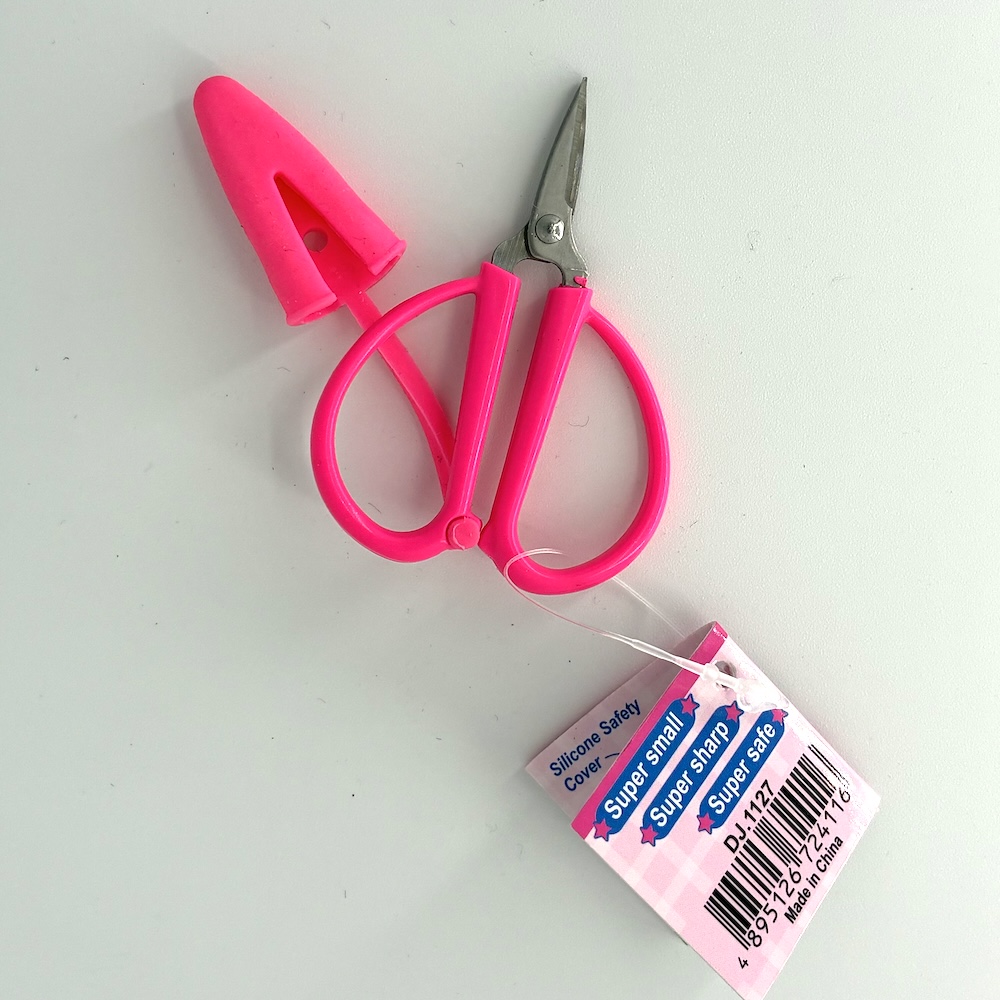Super Snips Trådsax är en vass liten trådsax i klara färg med skydd över saxbenen.